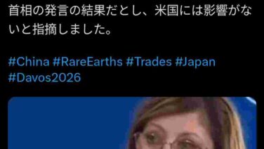 嫌儲 米財務長官「中国がレアアース輸出の約束を守った。対日輸出規制は高市の発言が原因だから我々に無関係」