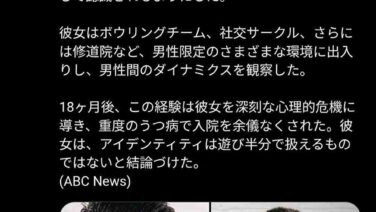 嫌儲 👩「何よ!男になりすまして男の特権について研究するわよ!」👉うつ病になってしまう