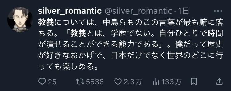 - 教養=歴史や文化の知識っていうのが浅すぎて…