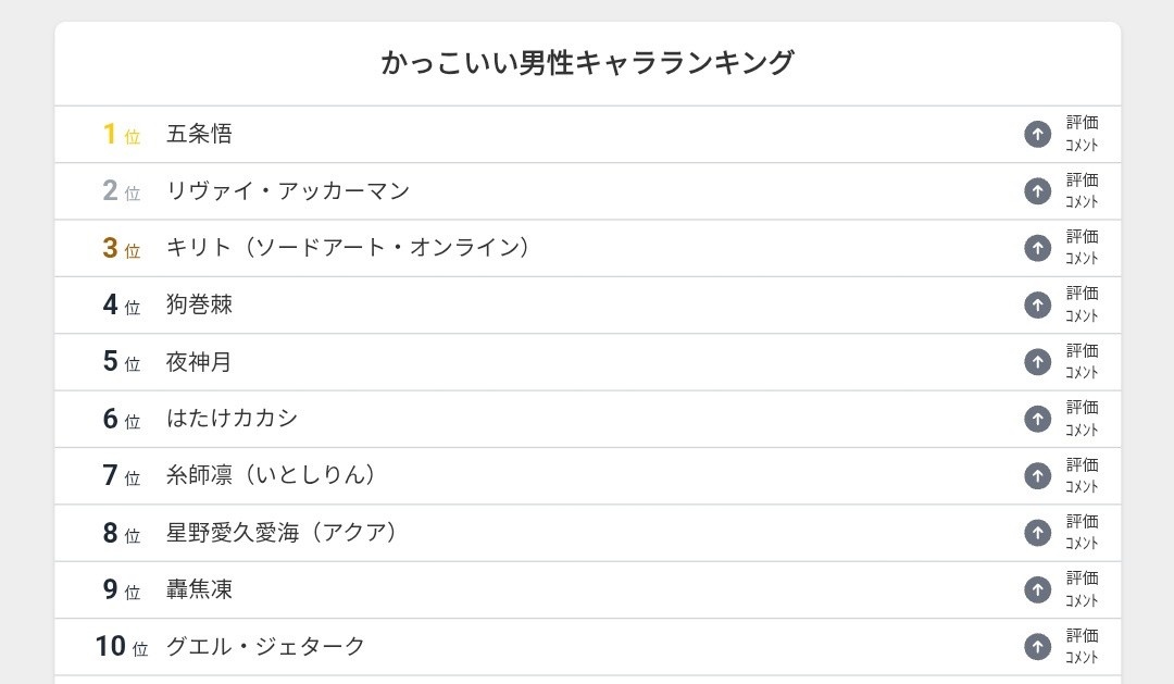 「男が選ぶかっこいいと思う男キャラクターランキング」が発表されるwww