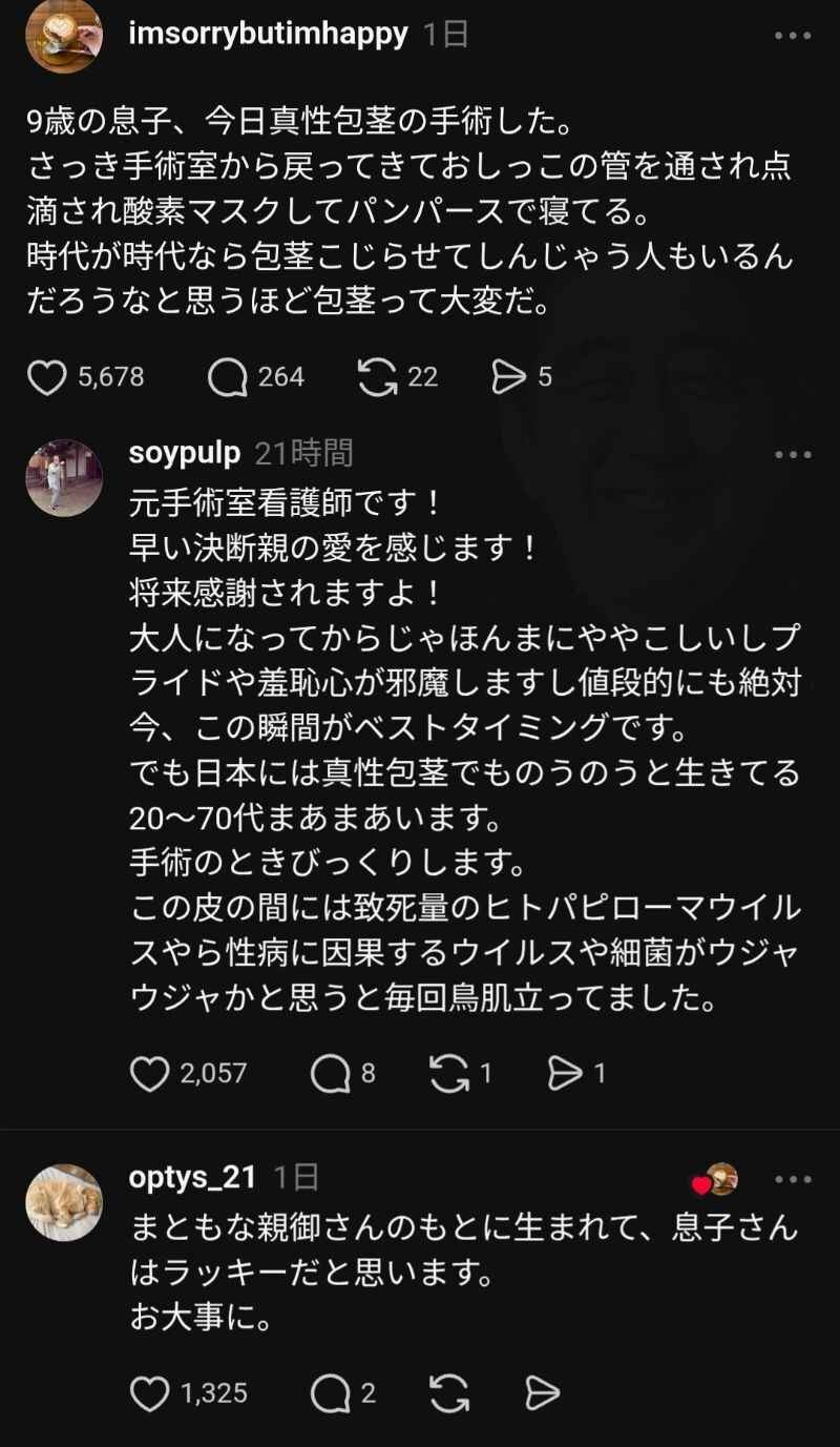 👩「9歳の息子、真性包茎の手術した」😲