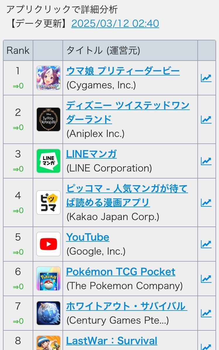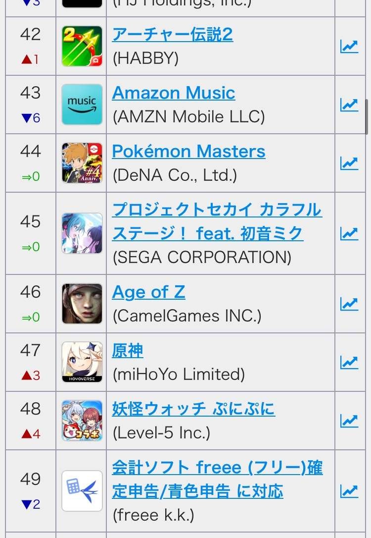 【セルラン速報】ウマ娘、またまたセルラン1位 原神は47位に転落