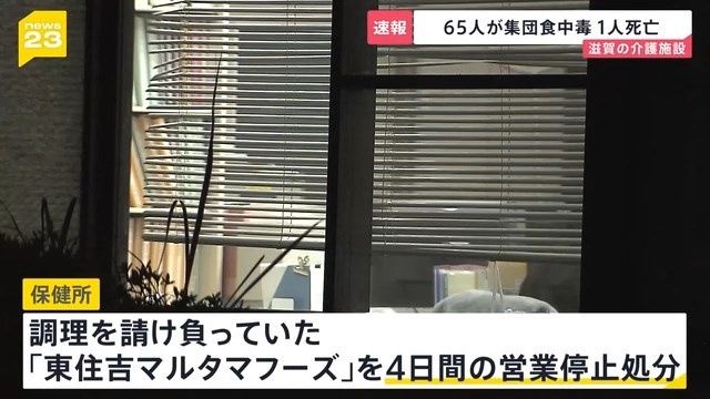 【🦠ヤバい】 介護施設5ヶ所で65人。集団ノロウイルス。 1人死亡。 昼食を提供した大阪「東住吉マルタマフーズ」営業停止