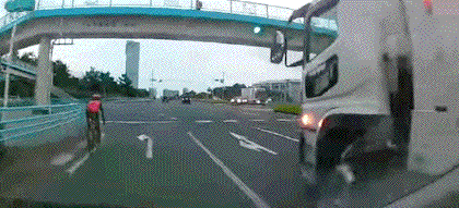 トラックが反応しなかったらチャリは死ぬか障碍者になってた