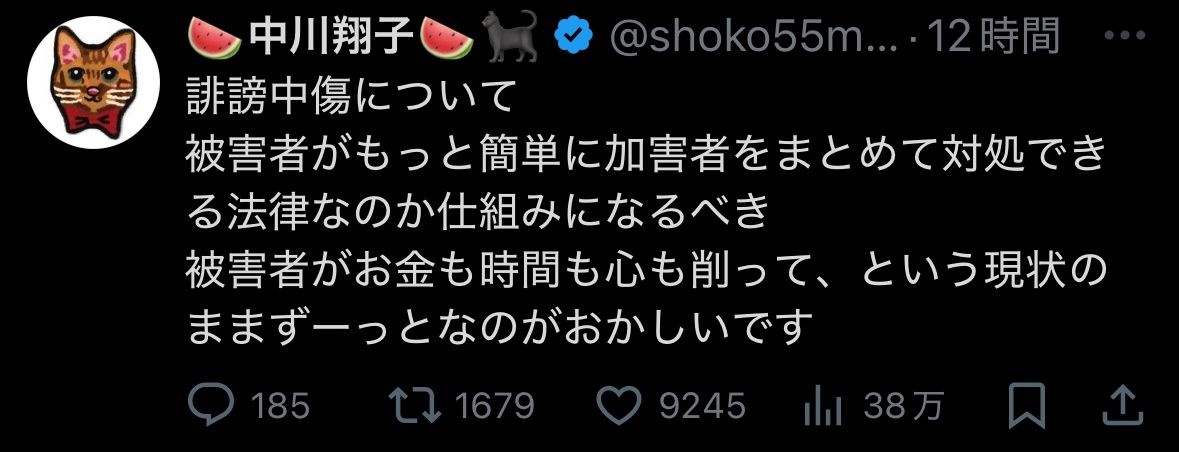 【提案】中川翔子「誹謗中傷の加害者を一網打尽に捕まえる法律に改正すべき」