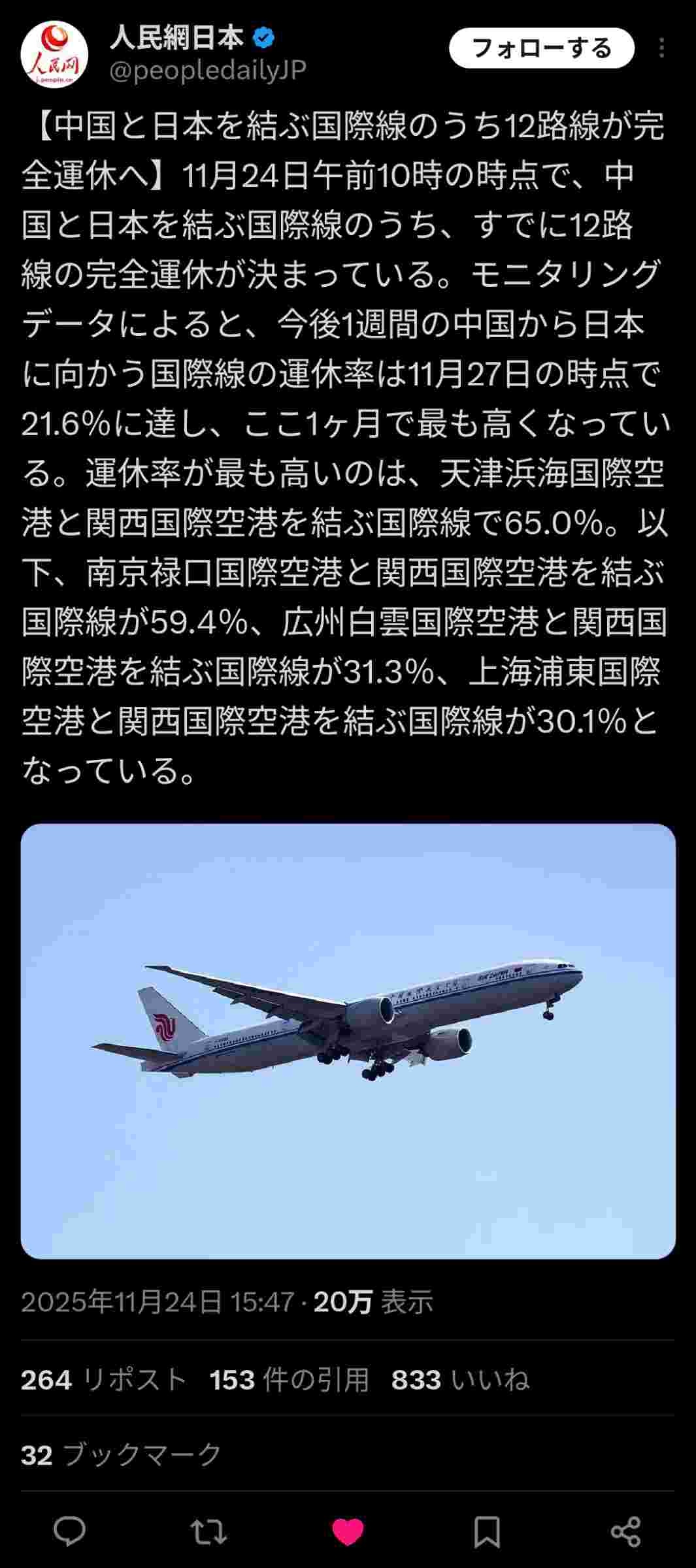 観光業も困ってないと言ってました - 31 : 2025/11/25(火) 00:56:07.17 ID:x88IMeTe0