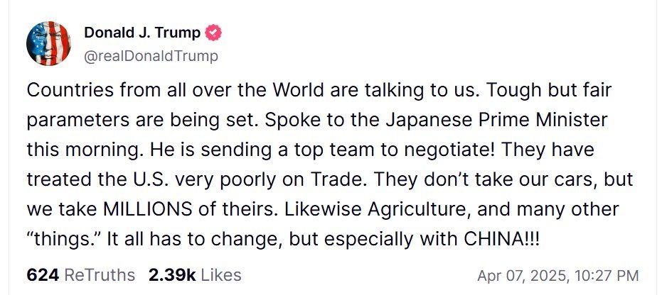 交渉チームが中国離れをもってくるなら緩和するという意味やろ - 14 : 2025/04/07(月) 23:22:42.437 ID:HLyd5ArFZ