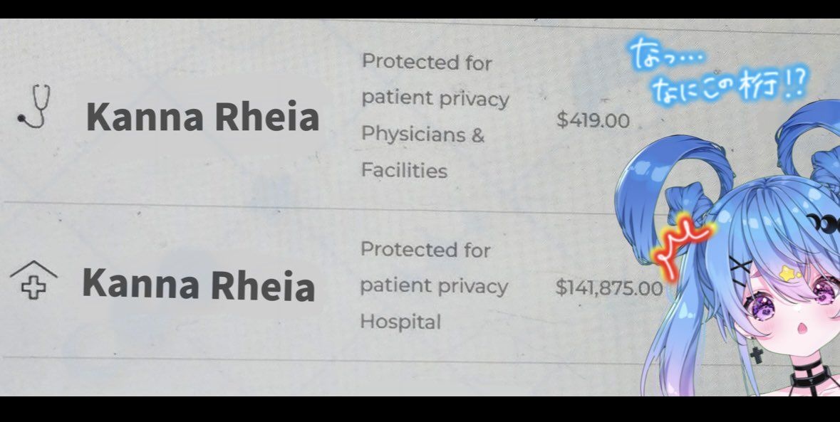 VTuber神那レイア、アメリカ手術費2191万円の請求書公開