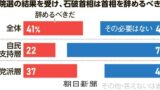 「辞めるべきだ」が41%で、「その必要はない」の方が47%とやや多い結果になった。