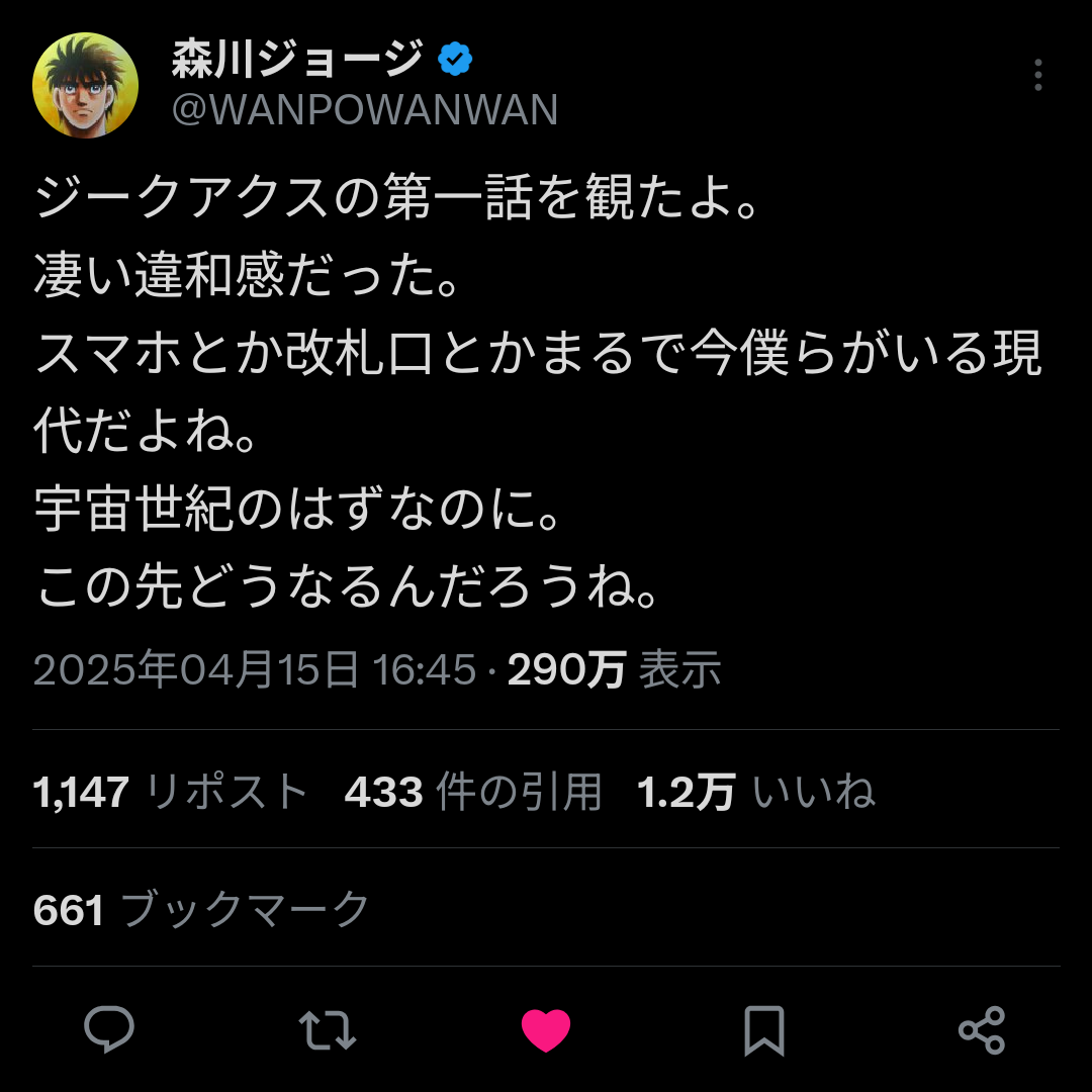 Twitterでアニメレビューしてバズって調子乗っちゃった系の人です - 10 : 2025/04/16(水) 14:29:15.61 ID:682OkAUi0