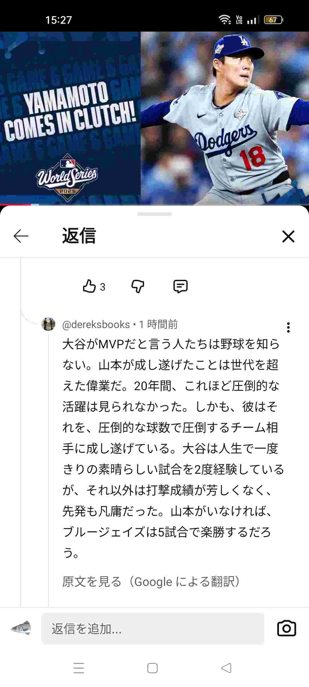 というか山本以外の先発が全員炎上してるの終わってるやろ - 39 : 2025/11/01(土) 15:40:25.32 ID:UyQo6nHf0