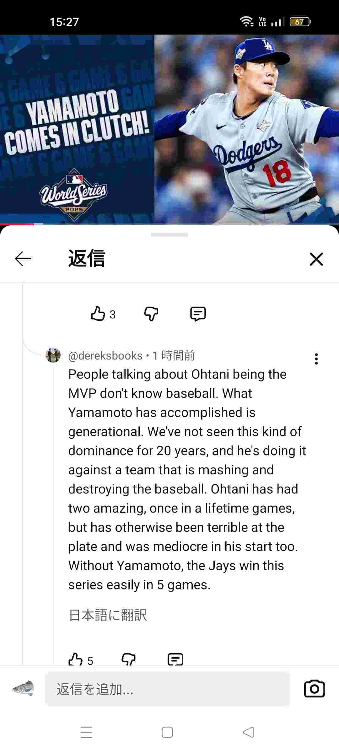 【正論】アメリカ人「大谷翔平がWSMVPだという奴は何も分かってない。MVPは山本由伸だ!」