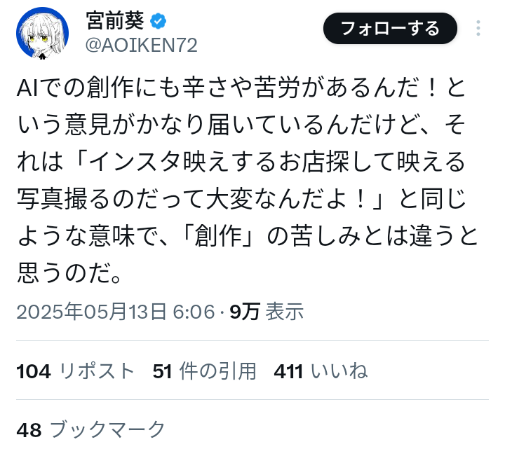 創作でないと同義だぞ - 32 : 2025/05/14(水) 11:56:17.60 ID:eFKespB80