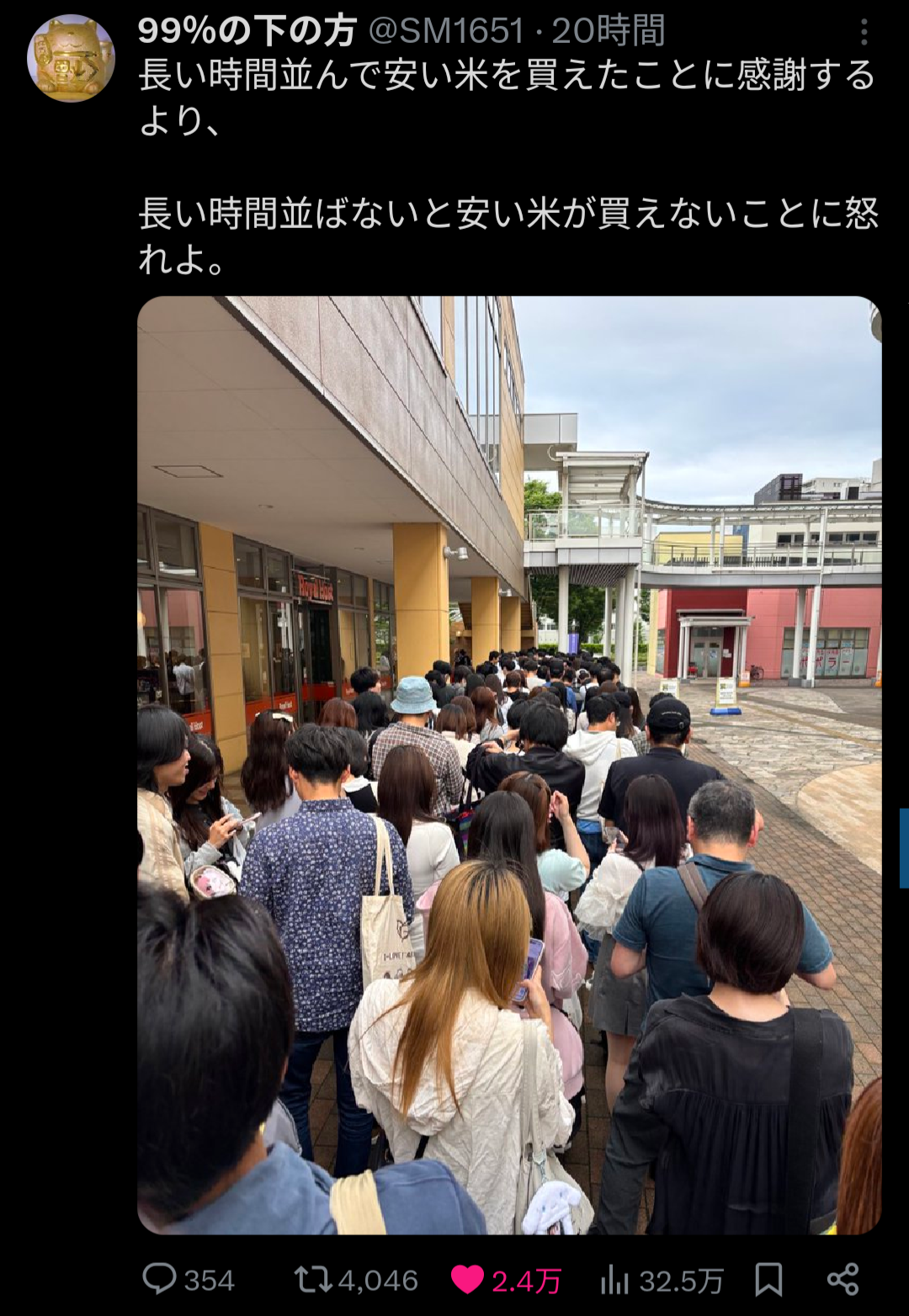 【正論】今日も早朝から備蓄米に長蛇の列…「安いコメを買える感謝よりも並ばないと買えないことに怒れよ日本人😡」