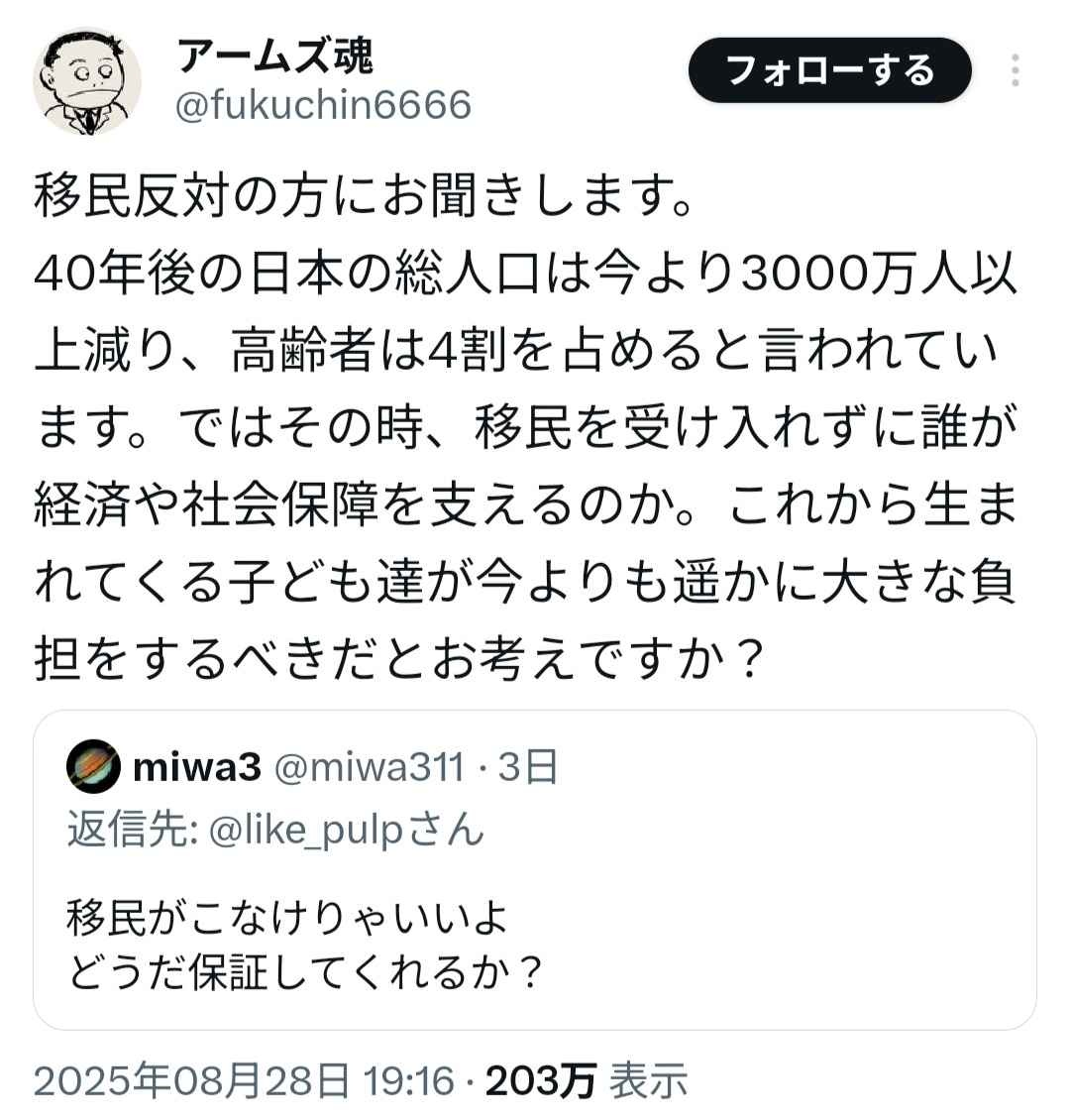 日本は移民受け入れないと終わる - 17 : 2025/08/31(日) 18:30:08.25 ID:Yp7iFvgzd