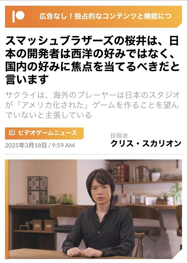 【正論】桜井政博「日本人のゲーム開発者は西洋に合わせるんじゃなくて日本の好みに合わせた方がいい」