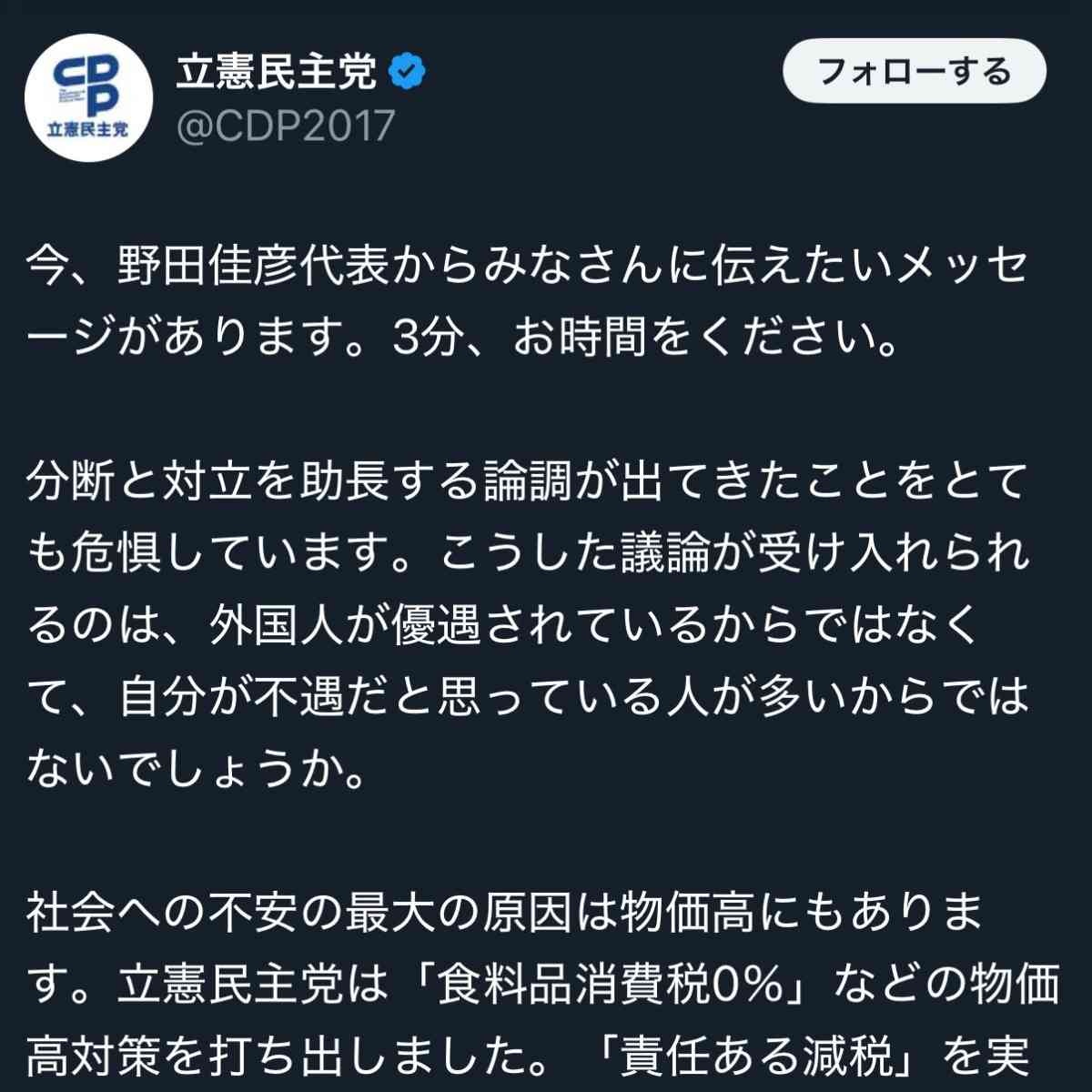 【正論】立憲・野田代表「やれ日本人だ外国人だなどと国籍で考えるのはいい加減に卒業しませんか!そんな壁は壊します!」