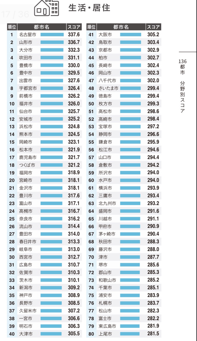 【画像】「住民の主観抜きで住みやすい街ランキング」発表。お前らの住んでるところは入ってたかな?
