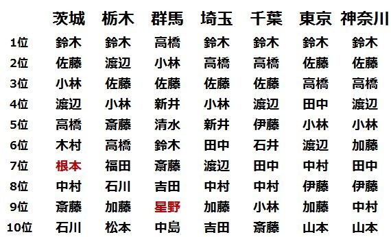 関西だと鈴木が殆どいないんで、多い苗字と言われてもピンと来ない
