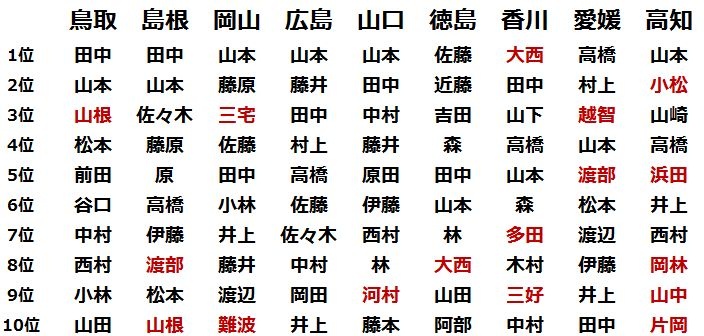 >>2の表で、鹿児島の10位が松元となっているが本が元なのもほとんど鹿児島ルーツ。