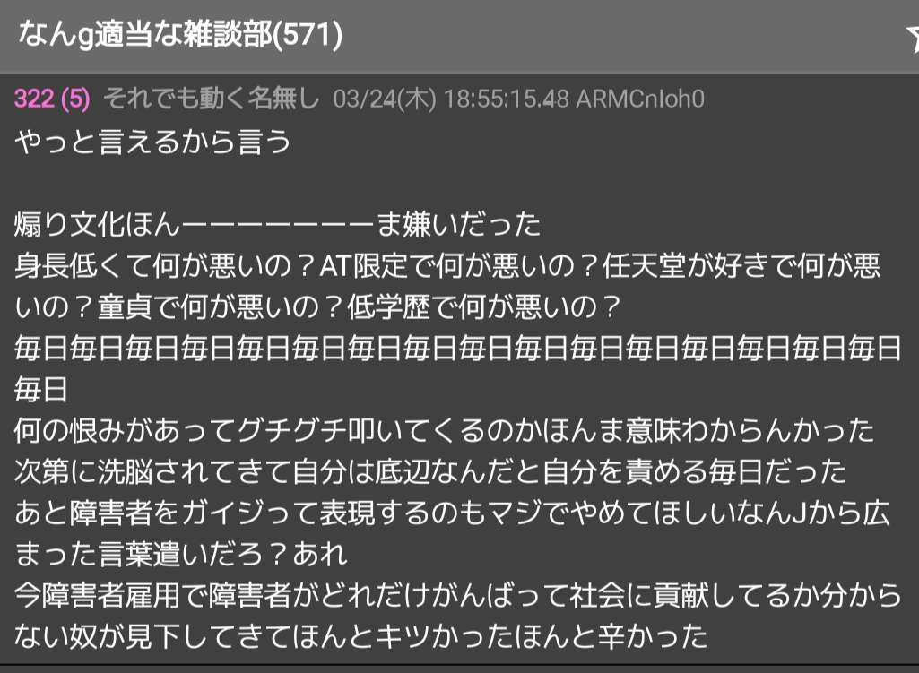 - なんJの煽りを真に受けてる時点で障がい者なんやなって感じ