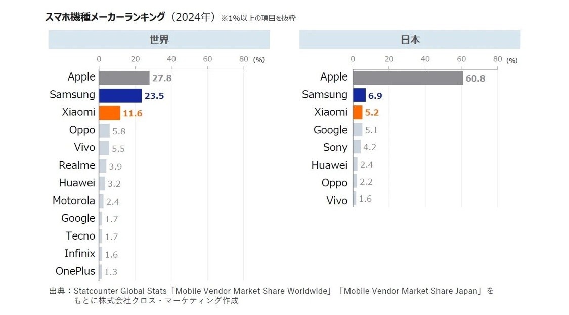 【画像】日本のスマホで「Apple」が未だに覇権を獲り続けている理由www