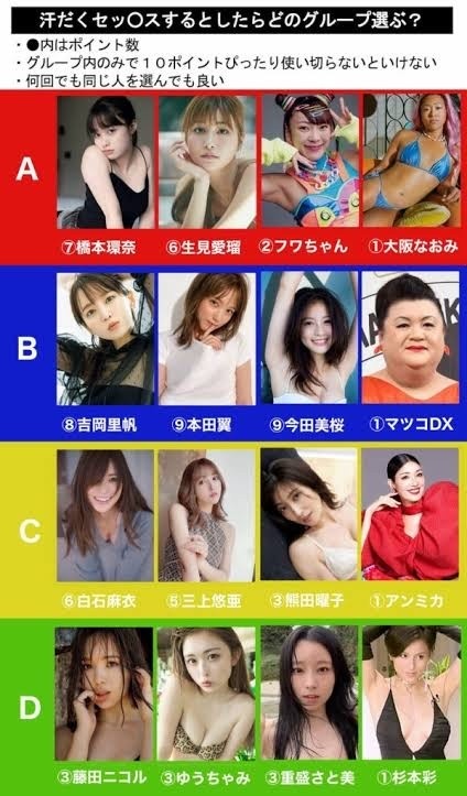 【画像】汗だくセクロスするとしたらどのグループを選ぶ?