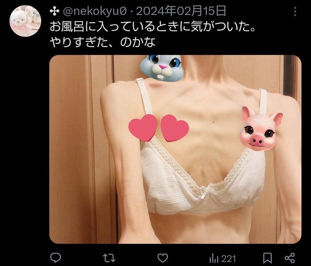こう言う奴キモすぎるから煽ってもっと痩せさせて死に追いやれ