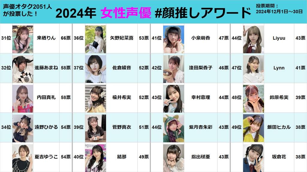 - 東山奈央と野川さくらがないとはふし穴ランキングだ
