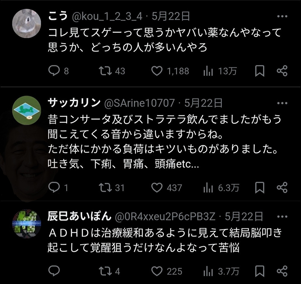体質によっては頭痛や吐き気で強烈なデバフかかるし、ADHD特有の興味ややる気はむしろ減衰する興味のないことへの集中力を高める代わりにデバフかかるって考えた方がいい