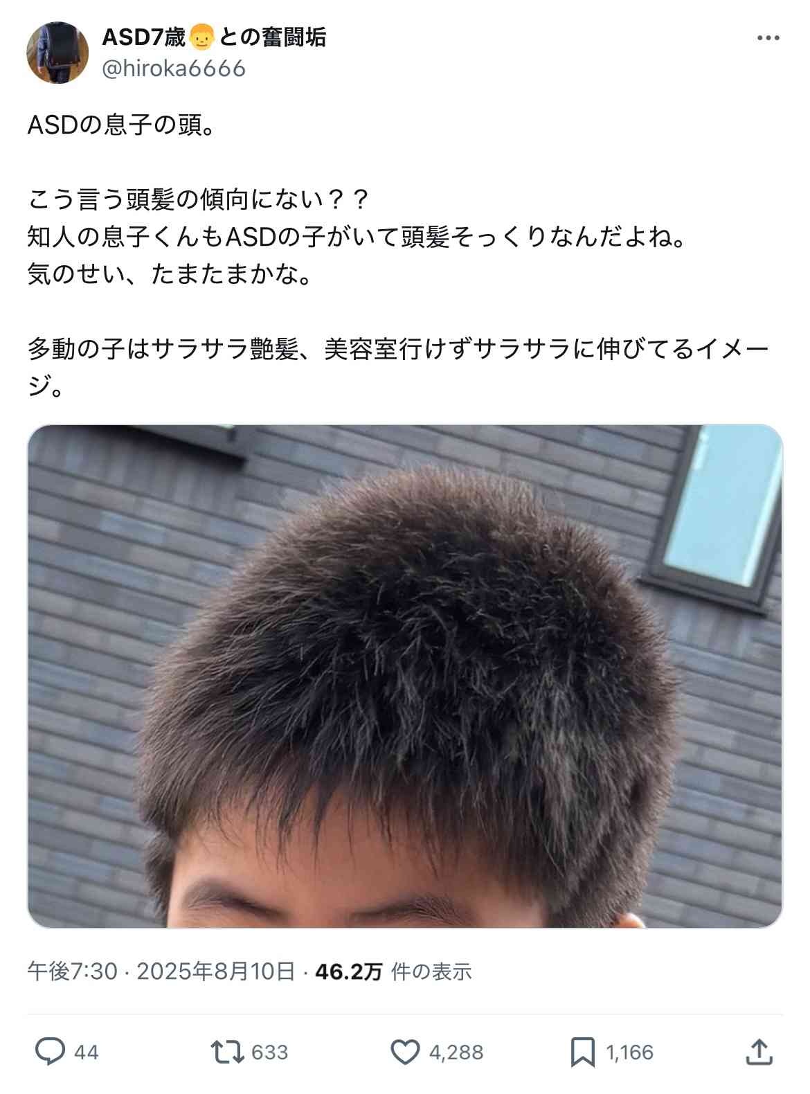 - これ前にTwitterで同じようなツイート伸びてなかった? 今まで会ってきたASD大体この髪質や!みたいなツイート