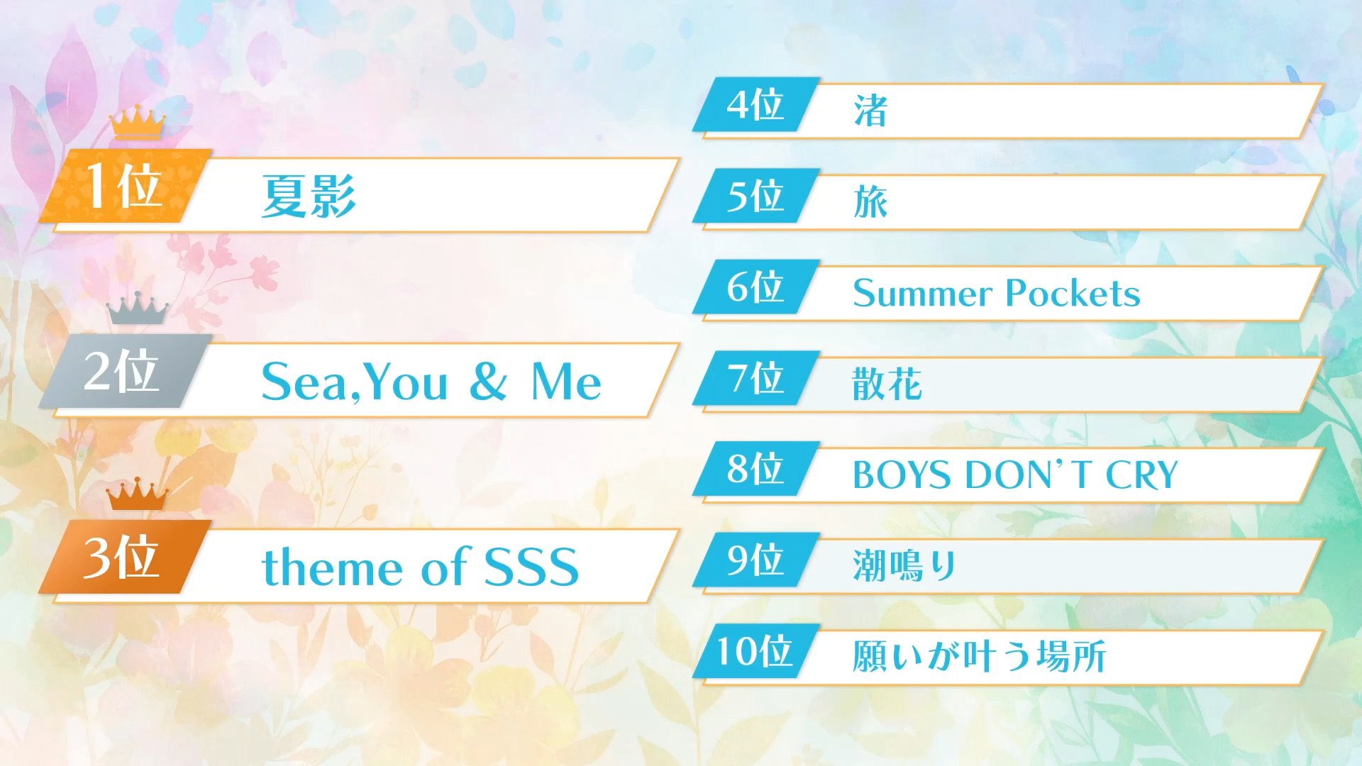 【Key総選挙2025】名シーン1位は『リトバス』恭介たちとの別れ、2位は『AIR』のゴール。歌曲部門は『鳥の詩』、BGMは『夏影』がトップに