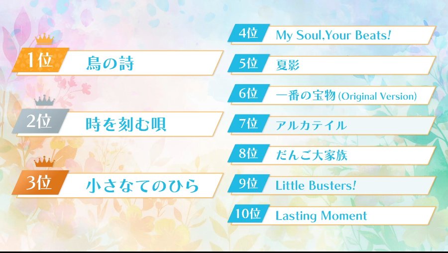 【石破朗報】key作品の曲ランキング、決まるwwwwwwwwwwwwwwwwwwwwwwww