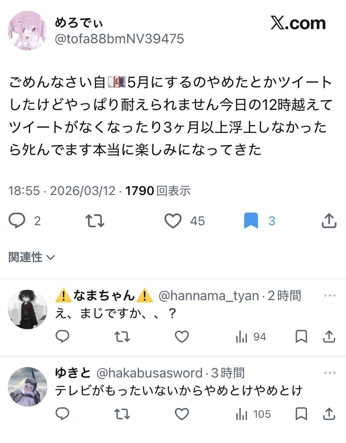 そんな承認欲求の塊みたいな生き物がジサツするわけねえだろ - 44 : 2026/03/13(金) 00:10:53.82 ID:ZmLkif9pM