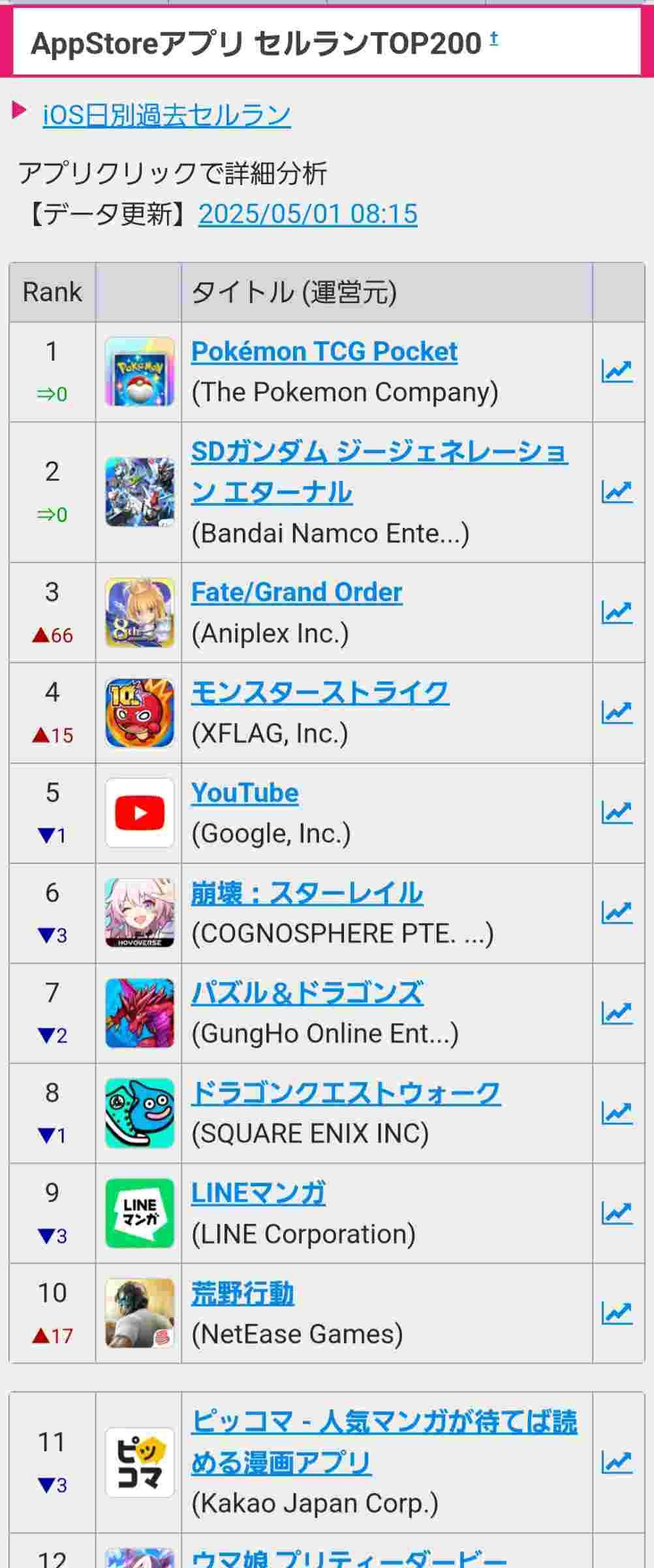 【超速報】ソシャゲ最新セルラン、とんでもない激戦になるwww