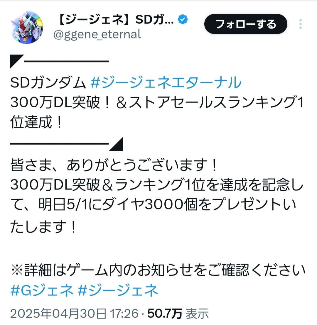 周年でこのオワコン具合なら無限大リリースされたらユーザー掻っ攫われるやろ - 35 : 2025/05/01(木) 09:24:25.086 ID:WLdhG2Tvy