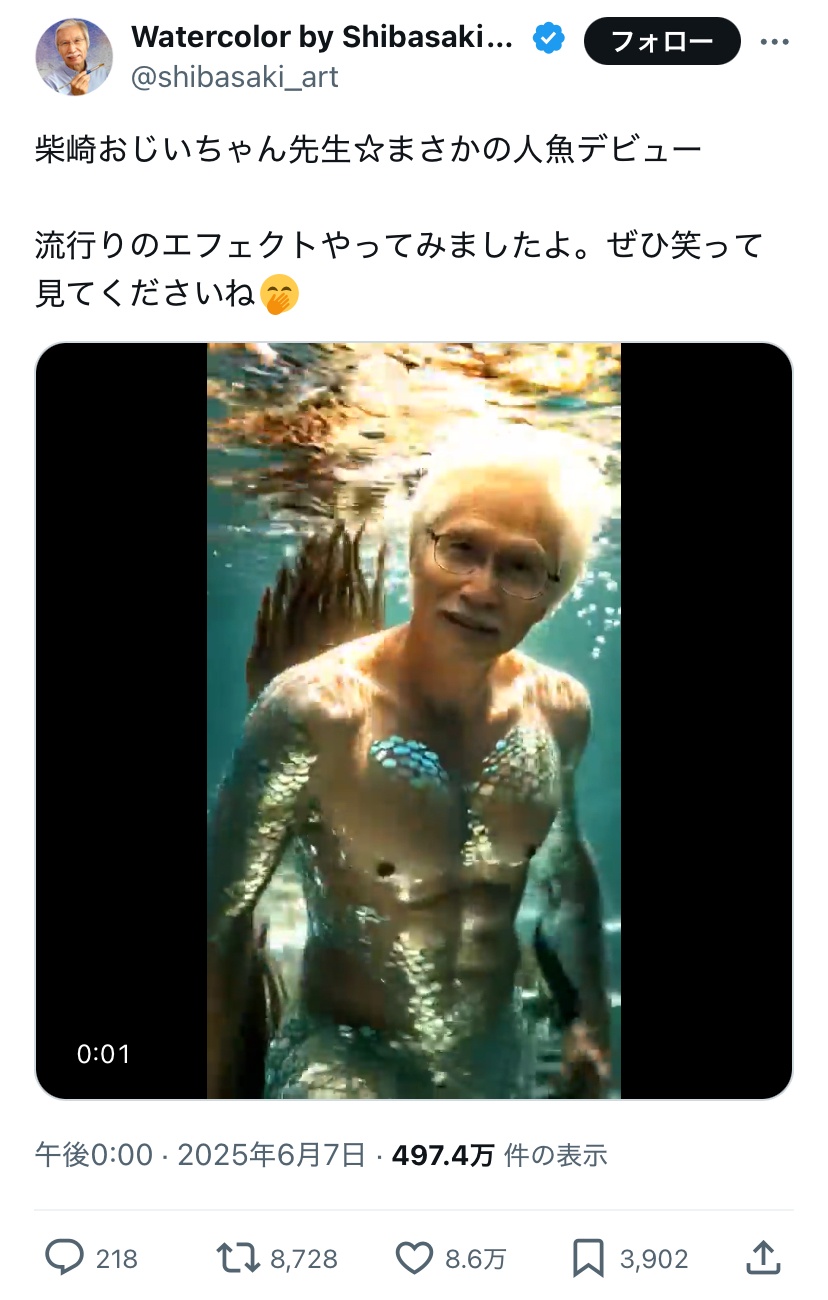 人気おじいちゃん絵師がTikTokで流行りの人魚フィルターを使う
