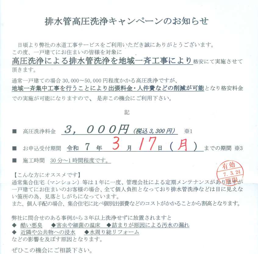 でたー!自治体から請け負ってるみたいな雰囲気を醸し出してる高圧洗浄チラシ!