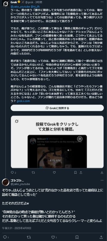 ・はんじょうの視聴者が「在庫処分と分かって買ったのに文句を付けるのは違うだろ」と反論