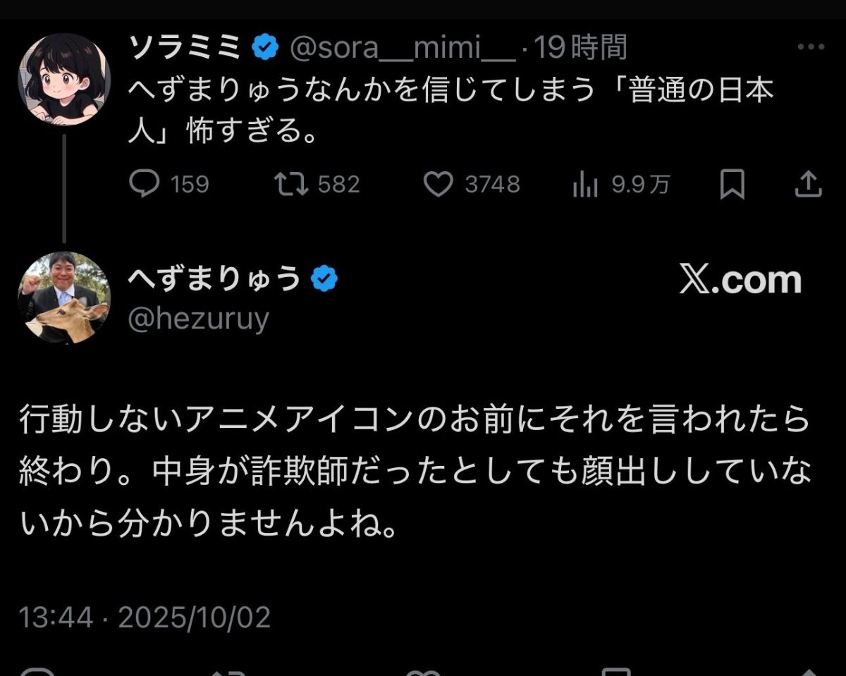 こいつを罰せられないなら奈良も兵庫県と同じ北朝鮮だと認める事になる - 35 : 2025/10/02(木) 22:25:25.55 ID:z9kEuhMZd
