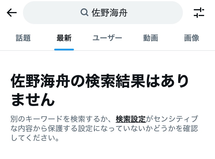 アプリから検索するとこのように表示されなくなり、「佐野海舟」を検索できなくなる