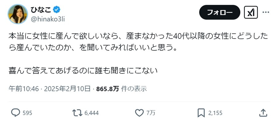 産めなかった理由聞いてそれを今の20代に活かせばいい - 43 : 2025/02/11(火) 16:23:07.375 ID:f8Lh2YVpg