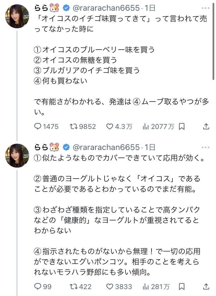 違うの買って来たら何で違うの買ってきたの私オイコスのイチゴ味って言ったよねって切れるやんま●こ - 23 : 2025/05/26(月) 15:18:24.552 ID:3fbsvwAG0