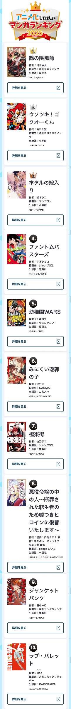 毎回思うけど意味ないランキングだよなこれに入選してもアニメ化確約しないし