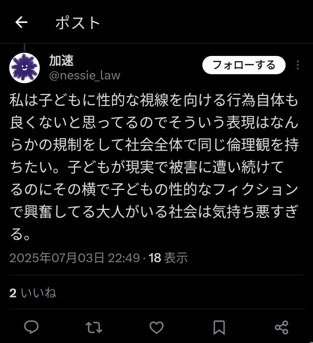 でもこういうキモイ奴らいるのが社会だしなんでポルノなら気持ち悪いから程度で規制が正論になるのか不思議でしょうがない