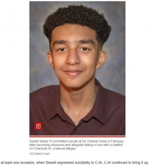 - AI生成の“恋人”に「私のところに来て」と誘われた14歳少年、自ら命を絶つ(米)