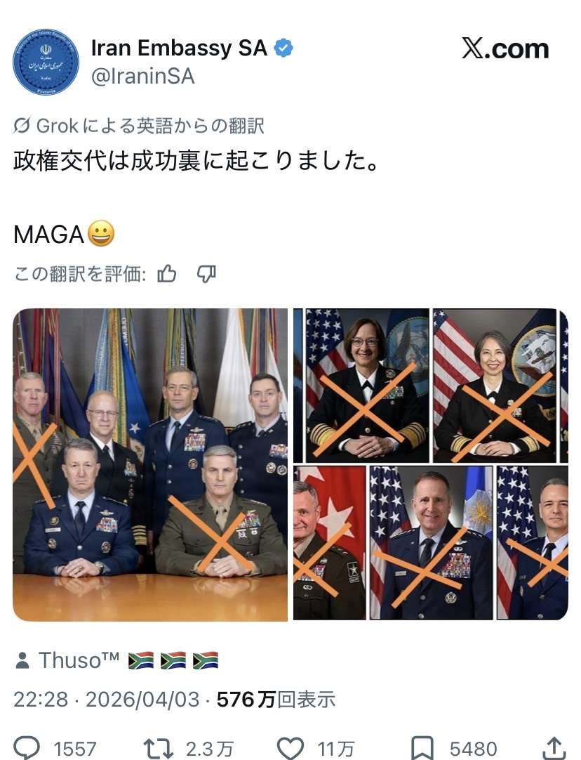 イランの高官は革命防衛隊も全員インテリだもの - 86 : 2026/04/04(土) 21:19:06.23 ID:fFlGRp0100404