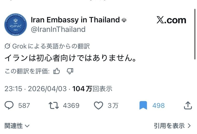 イランはトランプと違ってユーモアあるな - 125 : 2026/04/04(土) 21:23:09.21 ID:JWvJ8yoJ00404