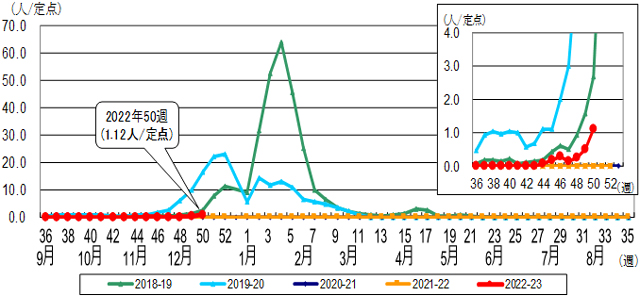 >12月30日から1月5日までの1週間に報告されたインフルエンザ患者数