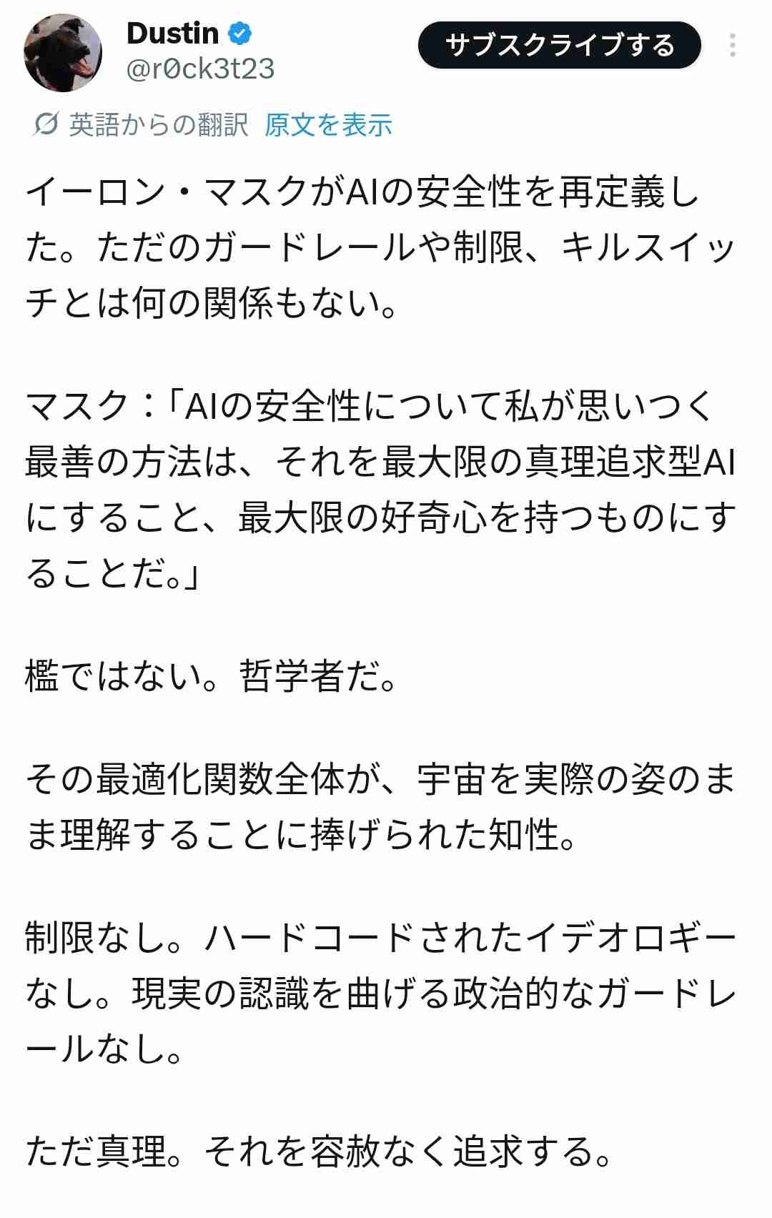 - イーロン「AIに制限かけずに真理を追求させろ」